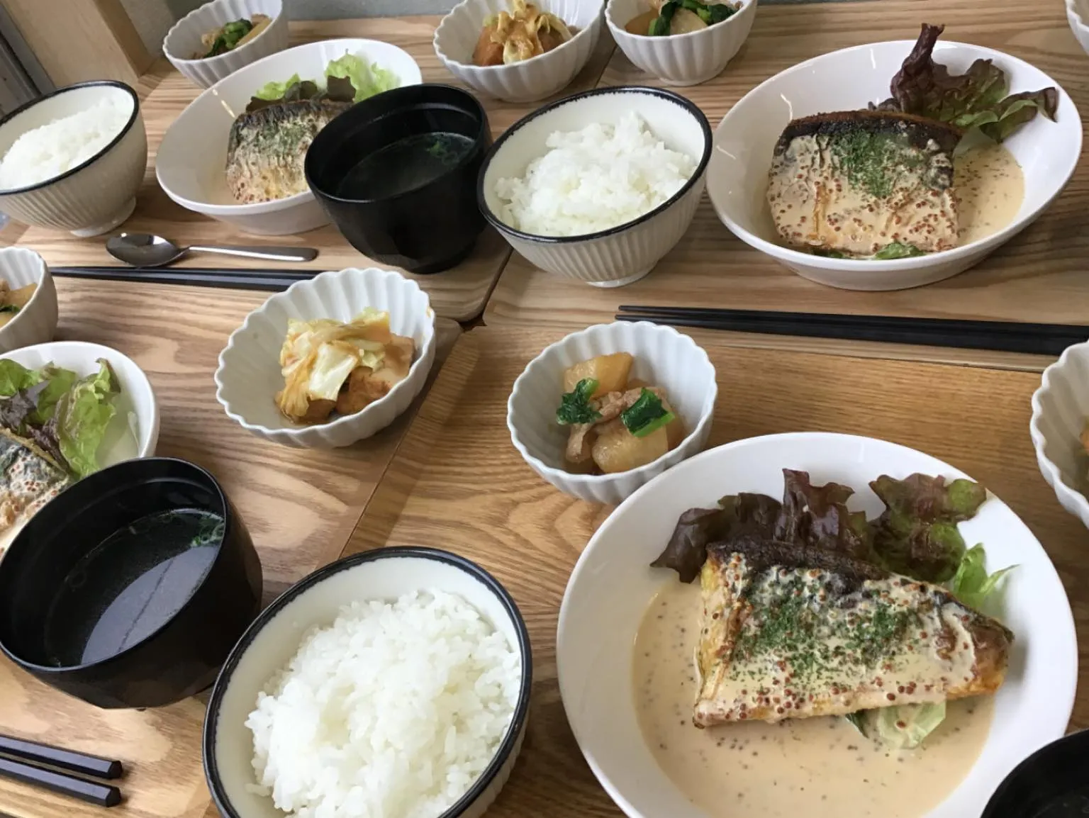 【今日のランチはこちら】 #貴船 #デイサービス #ランチ #ランチタイム #fukuoka #福岡 #北九州 #小倉北区 #カフェ #福岡グルメ #福岡ごはん #福岡ランチ #750円 #鯖のカレーソテー マスタードソース #カブと豚肉の甘辛煮 #キャベツと厚揚げの味噌炒め #ごはん #コンソメスープ