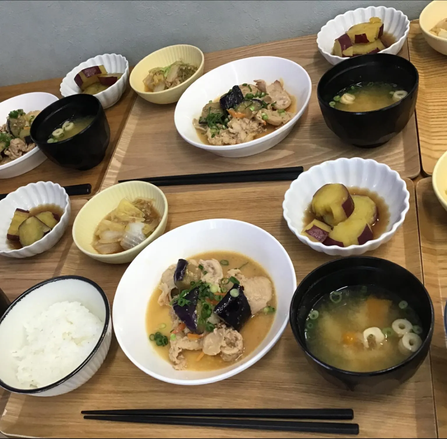 【今日のランチはこちら】 #貴船 #デイサービス #ランチ #ランチタイム #fukuoka #福岡 #北九州 #小倉北区 #カフェ #福岡グルメ #福岡ごはん #福岡ランチ #750円 #豚茄子味噌炒め #さつまいも甘煮 #白菜とツナの旨煮 #ごはん #みそ汁