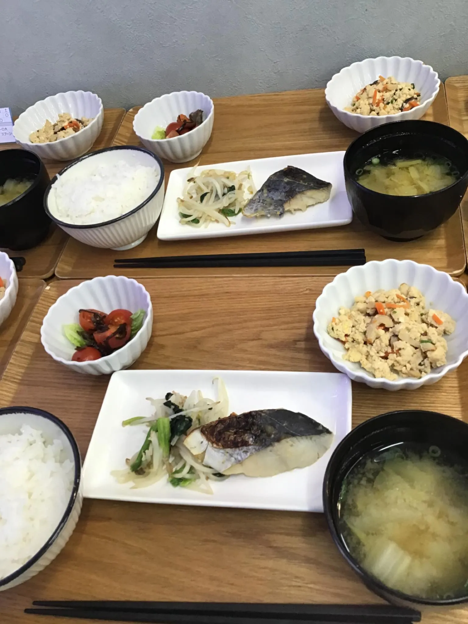 【今日のランチはこちら】 #貴船 #デイサービス #ランチ #ランチタイム #fukuoka #福岡 #北九州 #小倉北区 #カフェ #福岡グルメ #福岡ごはん #福岡ランチ #750円 #サワラの西京焼き #炒り豆腐 #トマトの塩昆布和え #ごはん #みそ汁