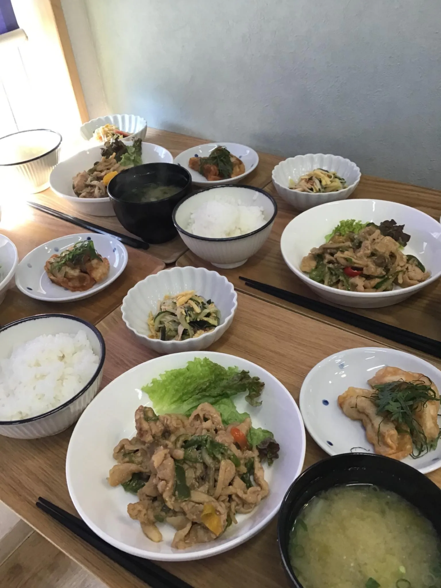 【今日のランチはこちら】 #貴船 #デイサービス #ランチ #ランチタイム #fukuoka #福岡 #北九州 #小倉北区 #カフェ #福岡グルメ #福岡ごはん #福岡ランチ #750円 #豚肉としめじの青椒肉絲 #春雨の中華サラダ #揚げ餃子 #ごはん #みそ汁