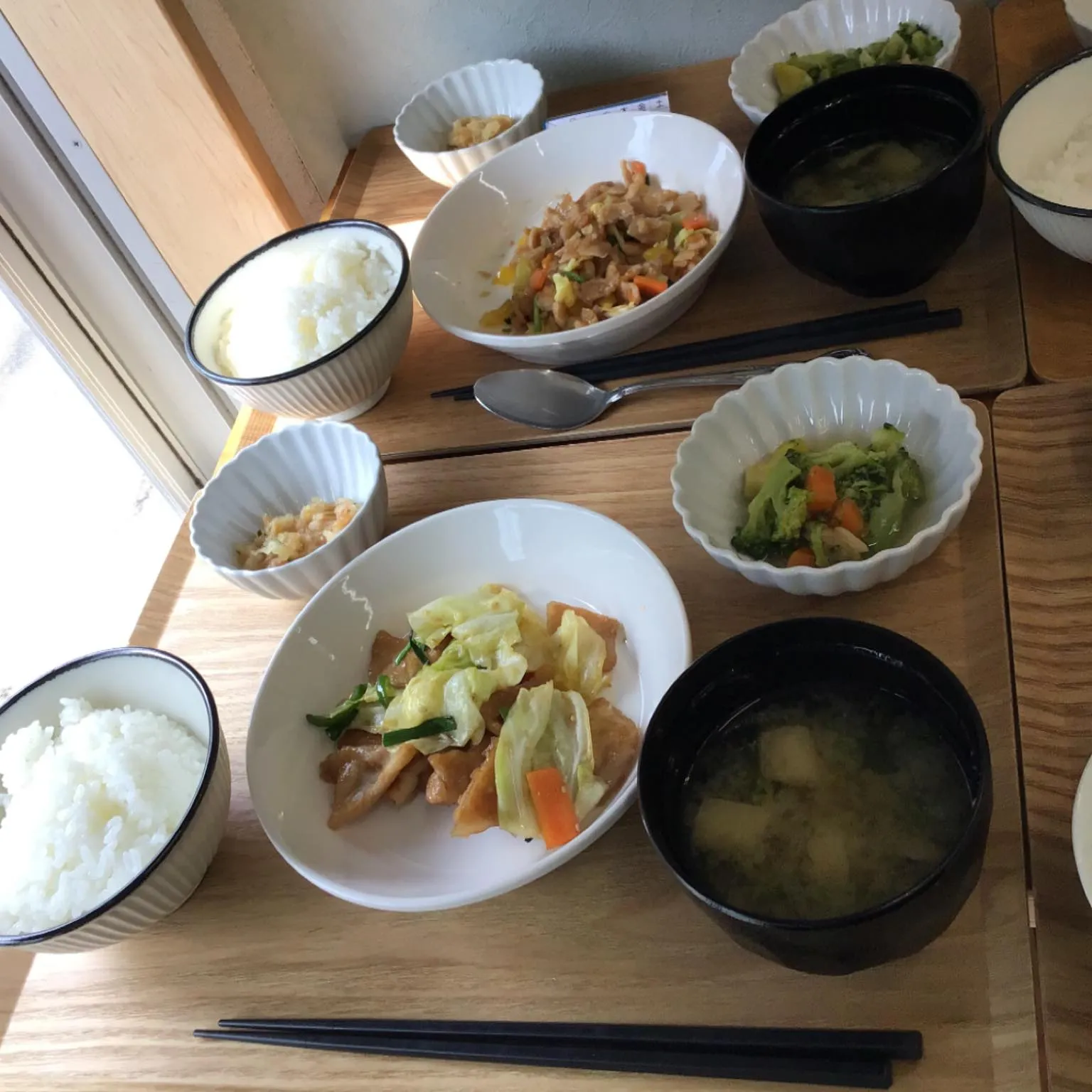 【今日のランチはこちら】 #貴船 #デイサービス #ランチ #ランチタイム #fukuoka #福岡 #北九州 #小倉北区 #カフェ #福岡グルメ #福岡ごはん #福岡ランチ #750円 #春キャベツの豚肉炒め #ブロッコリーと芽キャベツのコンソメ煮 #なめ茸おろし #みそ汁 #ごはん