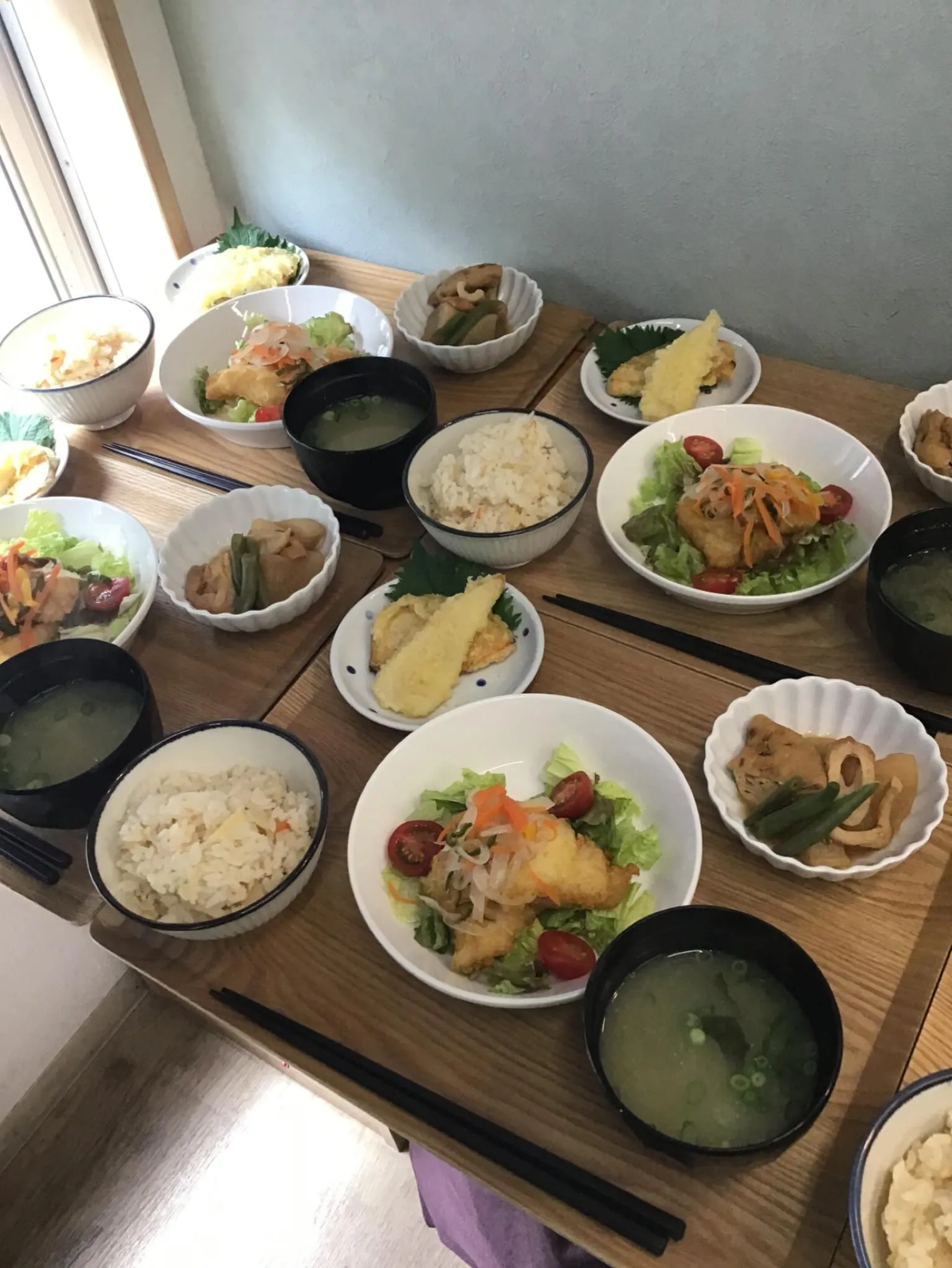 【今日のランチはこちら】 #貴船 #デイサービス #ランチ #ランチタイム #fukuoka #福岡 #北九州 #小倉北区 #カフェ #福岡グルメ #福岡ごはん #福岡ランチ #750円 #白身魚の甘酢漬け #大根とがんもの煮物 #かぼちゃと竹の子の天ぷら #竹の子ごはん #みそ汁